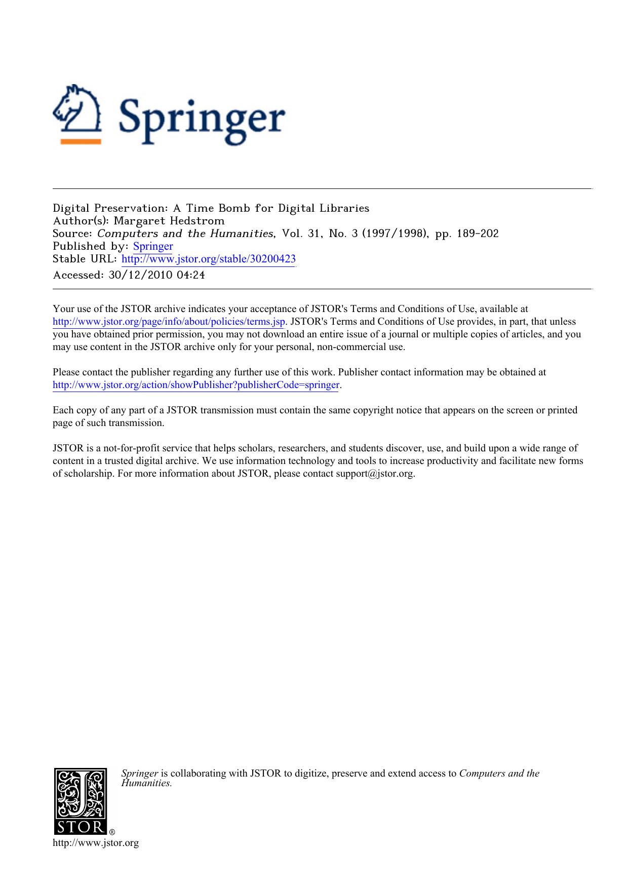 This article discusses the challenges and urgency of preserving digital information within digital libraries, highlighting the risks of digital obsolescence and the need for proactive preservation strategies.