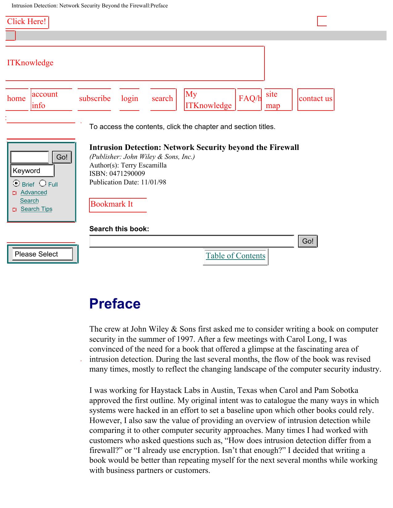 A practical guide to intrusion detection, this book explains how intrusion detection systems (IDS) complement traditional security measures like firewalls, authentication, and access control. It gives an overview of system‑ and network‑level security mechanisms (especially on Unix and Windows NT), describes different types of IDS (host‑based, network‑based, vulnerability scanners), and provides evaluations of commercially available IDS products and recommendations for building comprehensive security architectures. The book is intended for security officers, administrators, and practitioners seeking to strengthen network security beyond firewalls