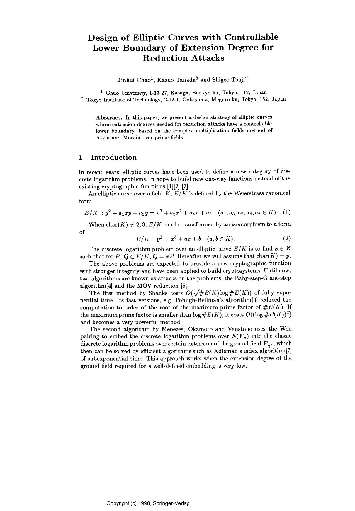 Title Design of elliptic curves with controllable lower boundary of extension degree for reduction attacks