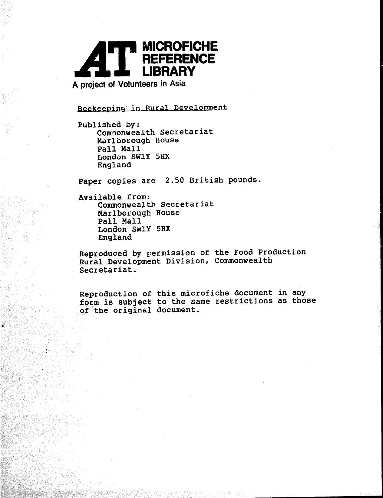 Title Beekeeping in Rural Development: Unexploited Beekeeping Potential in the Tropics with particular reference to the Commonwealth